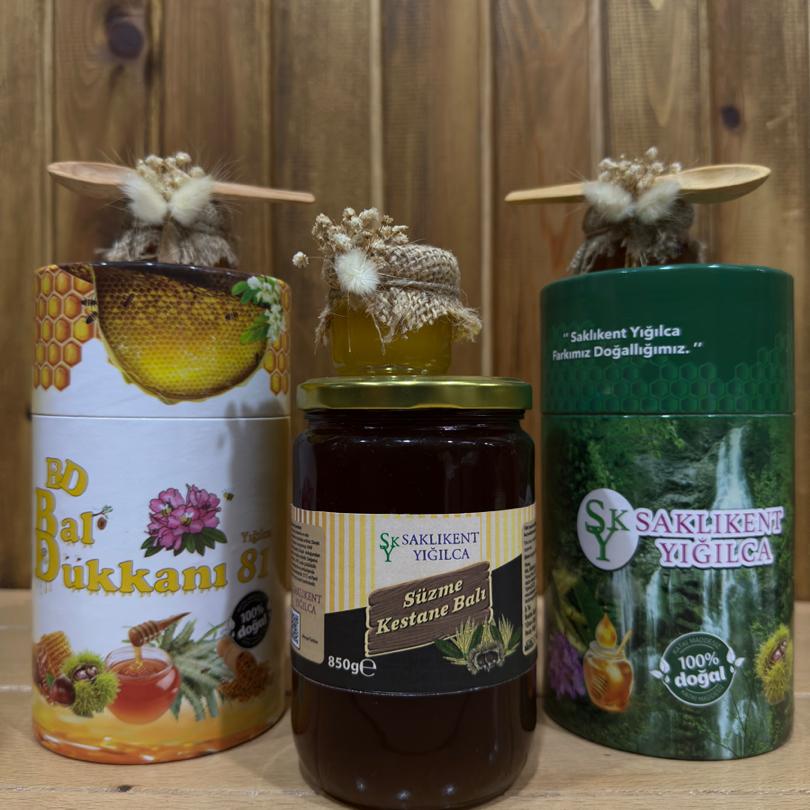 KESTANE BALI;Türkiye’nin coğrafi işaretleri arasında yer alan Düzce Saklıkent Yığılca Kestane Balı içinde eser miktarda Orman gülü balı içerir Kestane balının özelliğini ve faydalarını artırmaktadır Keskin ve koyu kıvamlı kestane balının insansağlığı açısından birçok faydası bulunmaktadır. Farklı tadı ve kokusu ile çokfaydalı olan Kestane balı, haziran ayında kestane ağacı çiçeklerinin açmasıylaüretilen bir baldır. Arılar bu dönemde kestane çiçeklerinden topladıklarıözlerle kestane balı üretmeye başlar. Bu çiçeklerden üretilen bal, diğerballardan daha farklıdır. Kestane balının polenleri diğer çiçekpolenlerine göre çok daha küçük olduğundan kristalize olma süresi üç (3) yılıbulmaktadır.